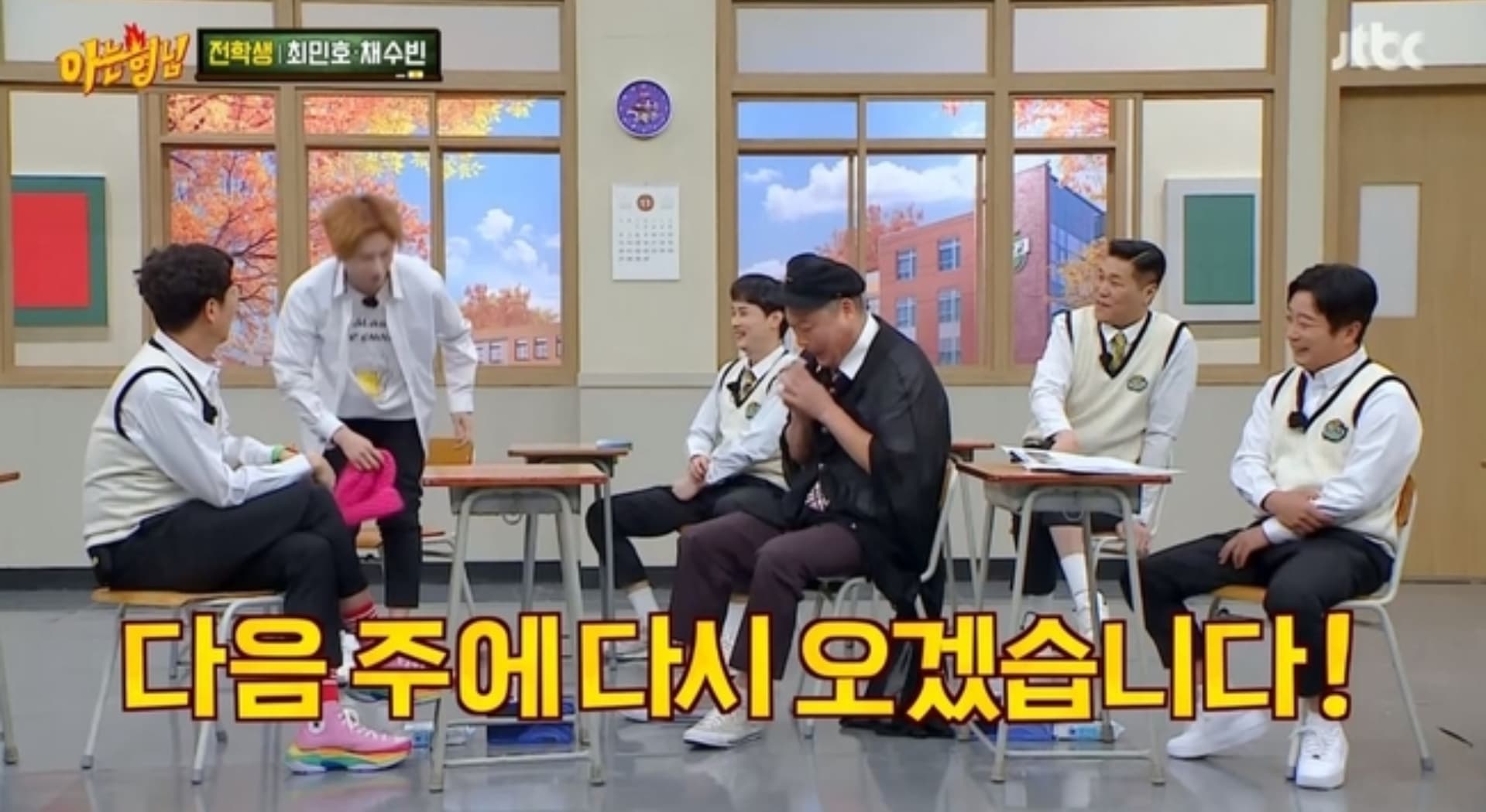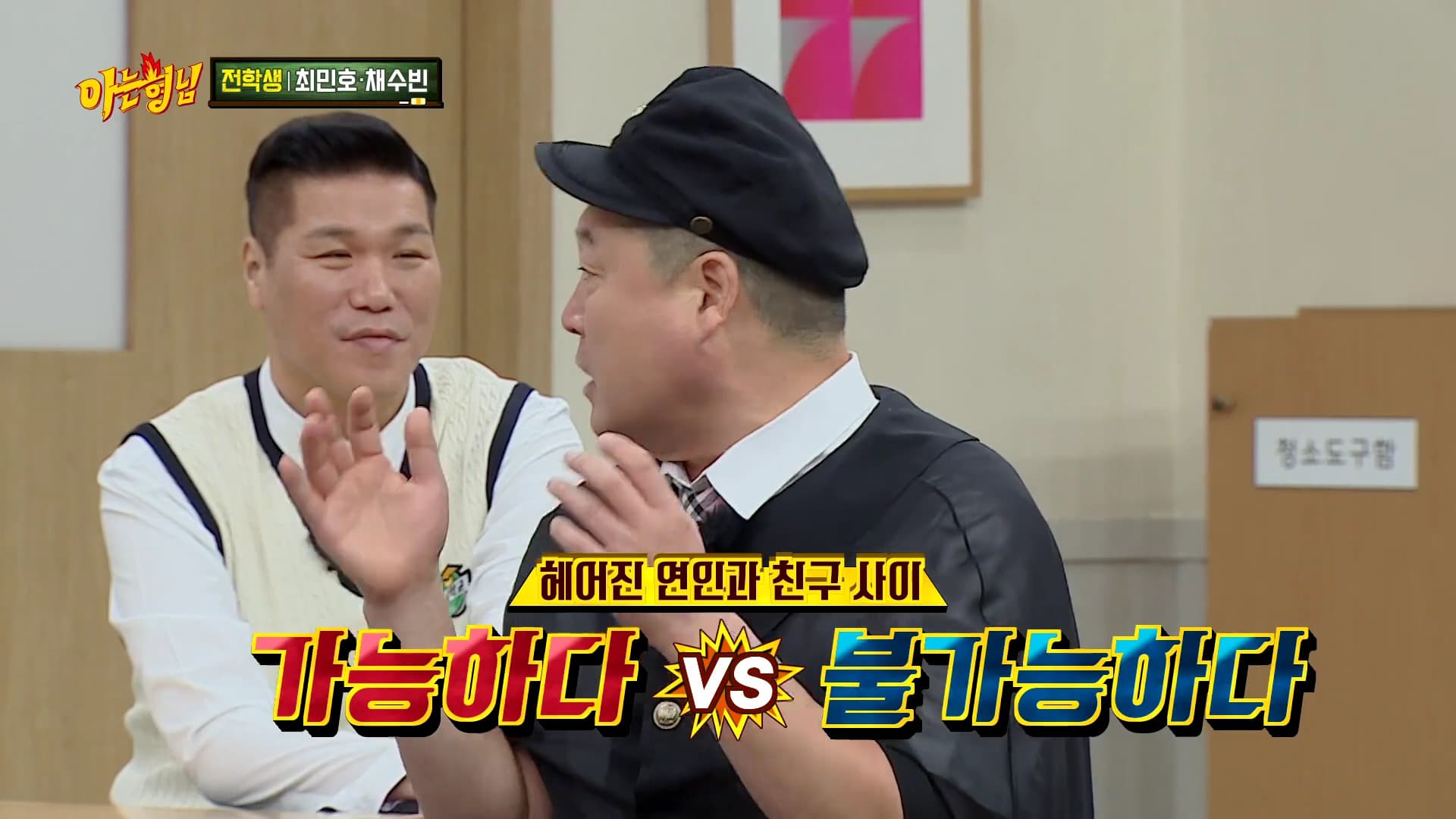 在 12 日播出的《認識的哥哥》中,新劇《閃耀國度》主角蔡秀彬、崔珉豪作為轉學生出演,兩人在劇中飾演「雖然分手了,但仍是朋友」的角色,引起了認哥們討論和前任做回朋友的可能性。「離婚男」李尚敏表示「絕對不可能再做朋友,因為是電視劇才有可能」,遭到李陳鎬吐槽「乾脆不聯繫(前妻)嗎?」
