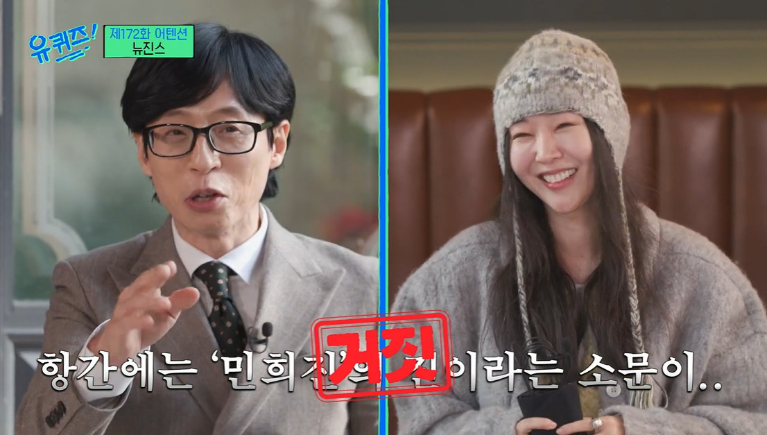 在 14 日播出的《You Quiz On the Block》,新人女團 NewJeans 作為嘉賓,所屬社代表閔熙珍也有陪伴出席。劉在錫問道「NewJeans」的意思,成員直言就是字面的意思,話鋒一轉,劉在錫指大家都流傳另一種意思 Jeans 是閔熙珍的「珍」。坐在一旁的閔熙珍,急忙用全身否認。