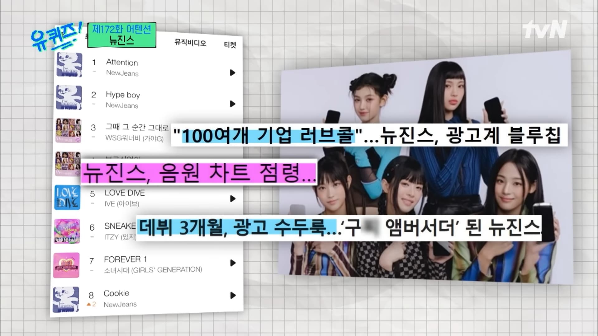 今年「怪物新人」NewJeans 一出道便備受矚目,四首出道曲通通霸佔音樂排行榜,特別是《Attention》、《Hype Boy》受到不少人喜愛,並得到眾多知名品牌商青睞。NewJeans 之母閔熙珍在《You Quiz On the Block》透露出道僅兩個月 NewJeans 成員獲得首次結算,要知道有些組合出道幾年仍未得結算,可見 NewJeans 真的大成功!