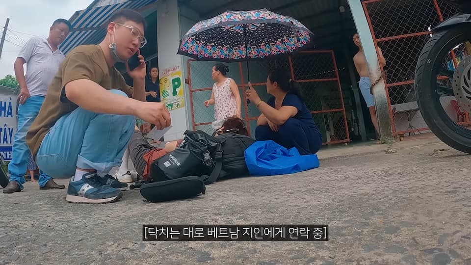 在當地人的幫助下報警,盧弘喆移動到路邊,好心的越南人為他們送上紙巾止血,並為盧弘喆撐傘擋雨,直到救護車把他送院為止。