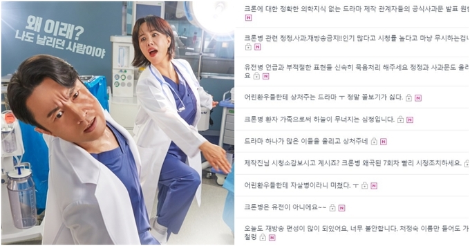 對此,目前「克隆氏症」病友會、網絡社區等不斷出現向廣播通信審議委員會提出民怨的文章。有患者發文表示,「覺得大家對克隆氏症患者的認識會變得更差、設定得過於像事實一樣」,所以向廣播通信審議委員會提出投訴。