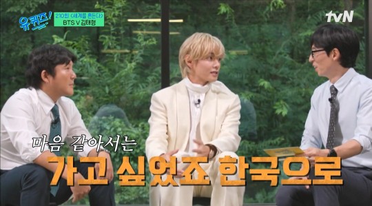 劉在錫提到社長李瑞鎮對 V 的評價,「誠實但動作超級慢的職員」,V 則解釋已經盡量做得很快了。他也表示李瑞鎮是個直率又搞笑的人,第一次見到像他一樣的人,給人一種內心只有 20 多歲的人的感覺。此外,被問到如果有一天製作《泰亨家》節目,他想邀請那些人參與,V 希望製作成旅行節目,和 BTS 成員或者是家人一起旅行。