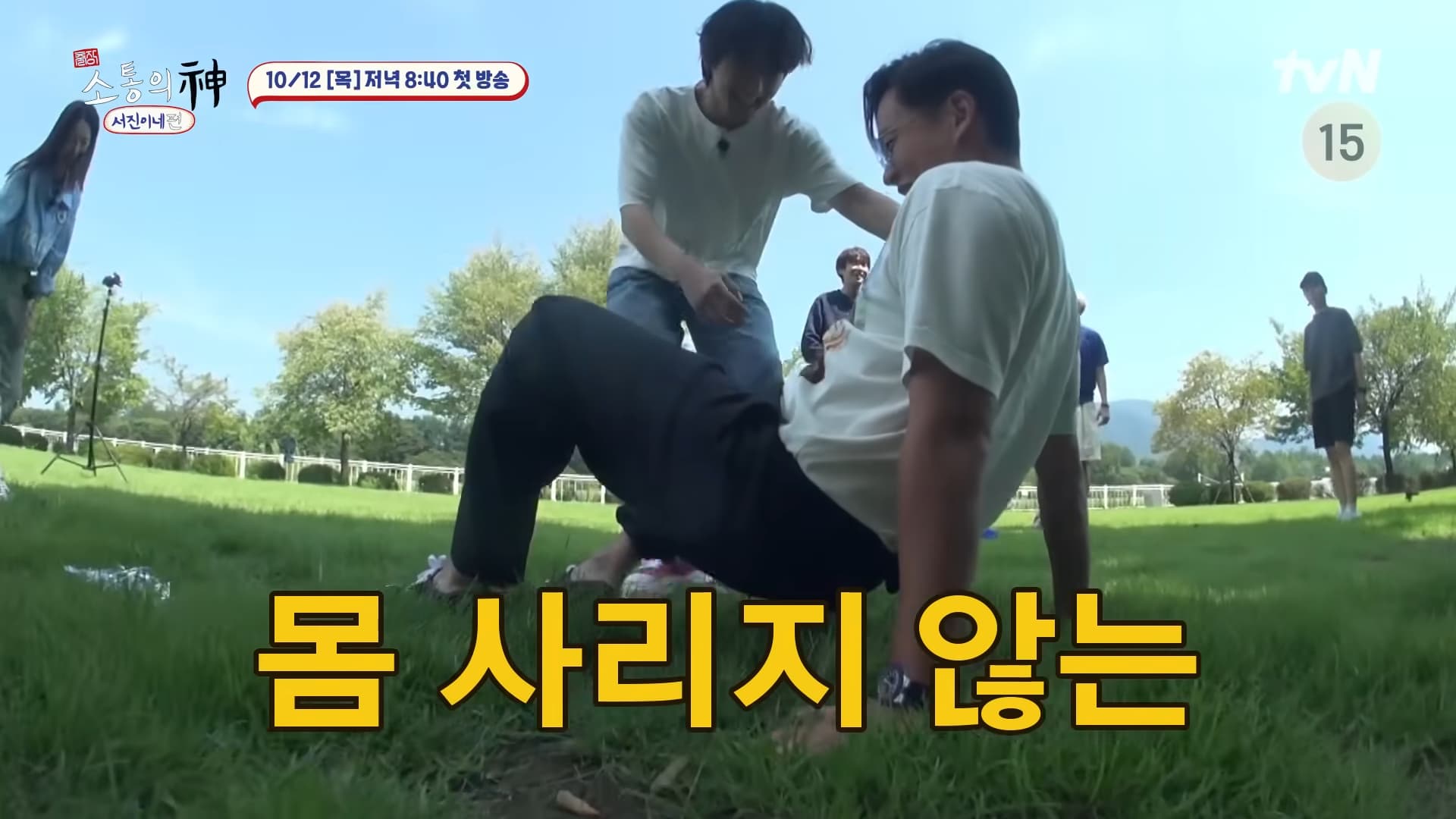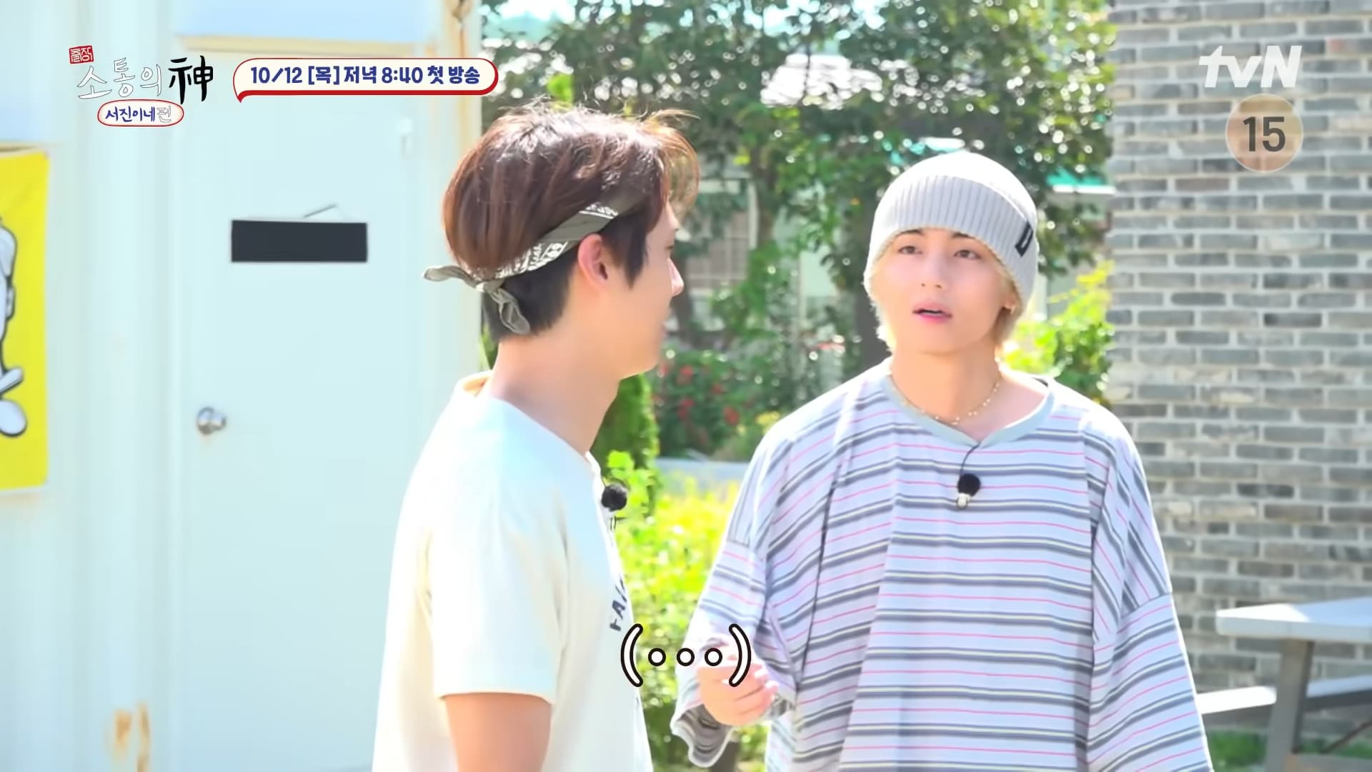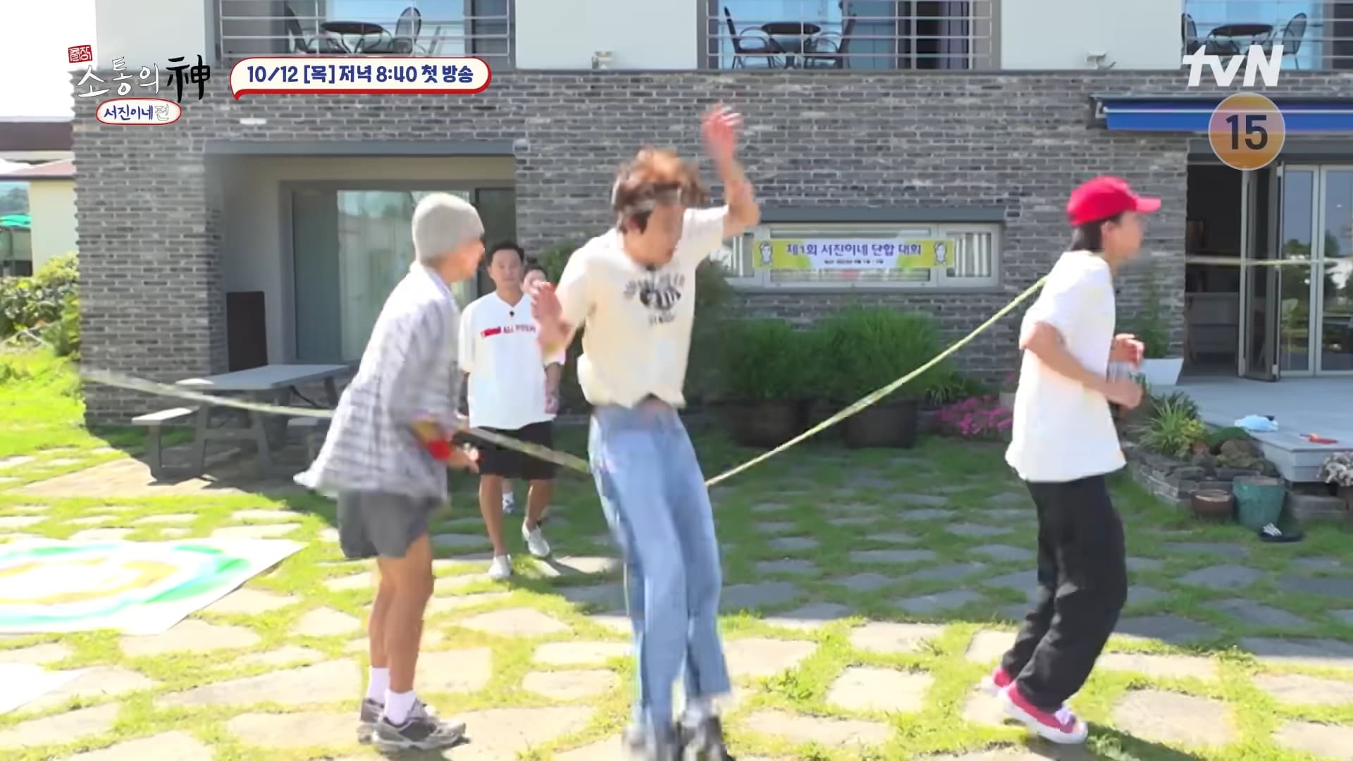 在團體跳繩中,在朴敘俊和 V 之後上場的崔宇植一上場就被繩子纏住,讓人預感到了他們令人抓狂的化學反應。