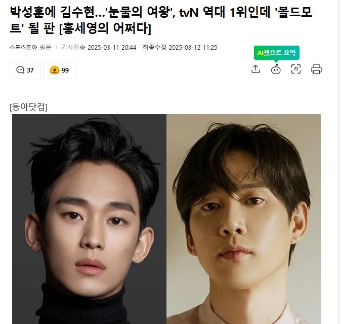 作為 tvN 招牌代表作品《淚之女王》,主要演員金秀賢、朴成焄卻先後陷入爭議,有韓媒以「佛地魔」形容該劇一年後變成「不能說的作品」,但韓國網友對記者綑綁討論感到不滿。