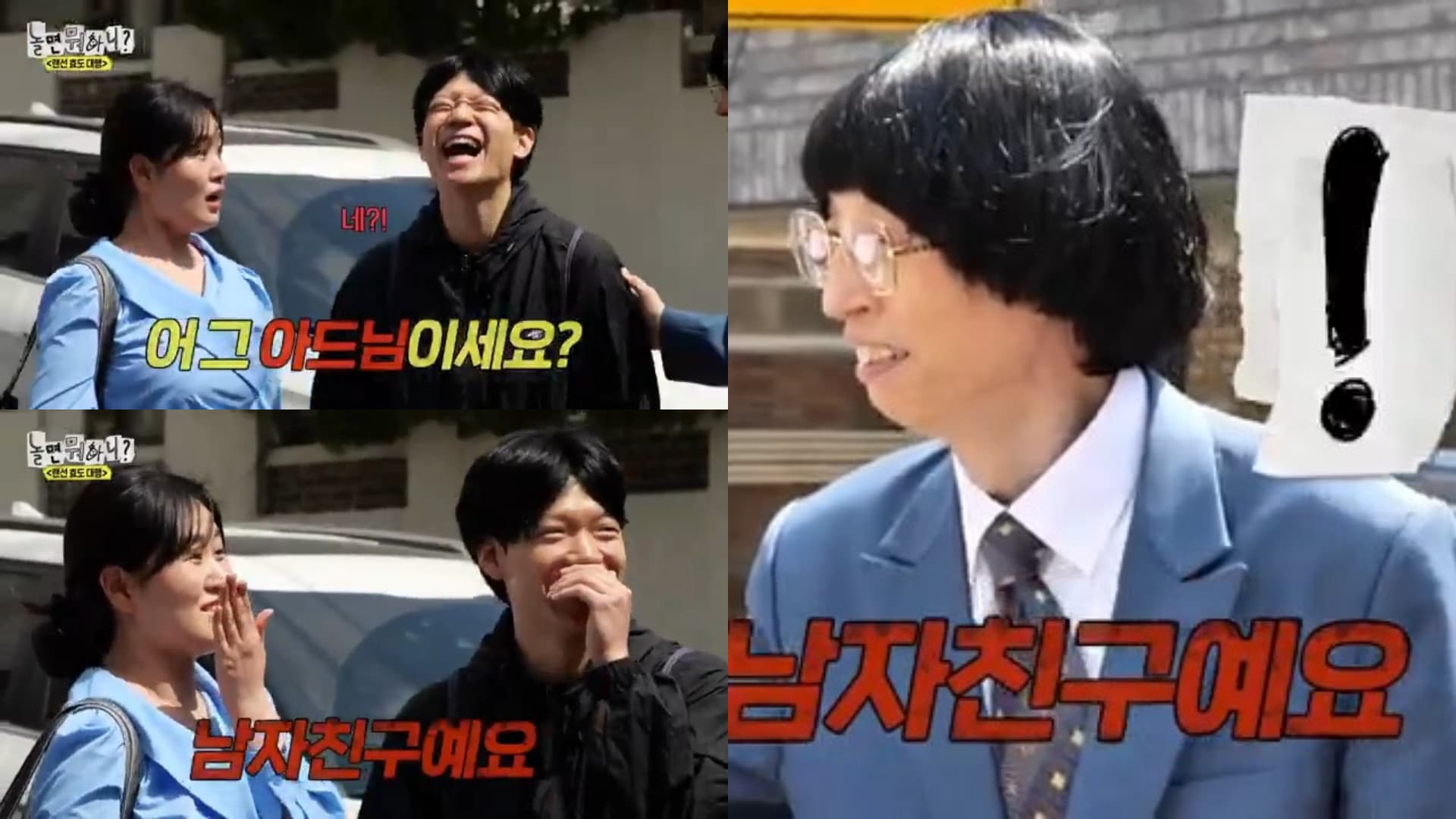 不過真正的「大型事故」發生在劉在錫遇到一對路過情侶時!在聽到女方說要去補習班後,劉在錫竟脫口而出:「這是您兒子嗎?」結果對方一臉錯愕回應:「是我男朋友!」瞬間空氣凝結,旁邊的 HAHA 直接崩潰把劉在錫推倒在地,氣到大喊:「哥是瘋了嗎?」