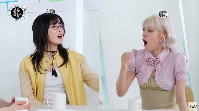張度練建議「為什麼不把這條寫進續約條件裡」,雨琦與 Minnie 一臉震驚表示從沒想過。Minnie 無奈說:「我們還有 3 年約,現在說什麼都太晚了」,引發現場笑聲。雨琦則回應:「太感謝前輩了,我會再跟公司談一談」。