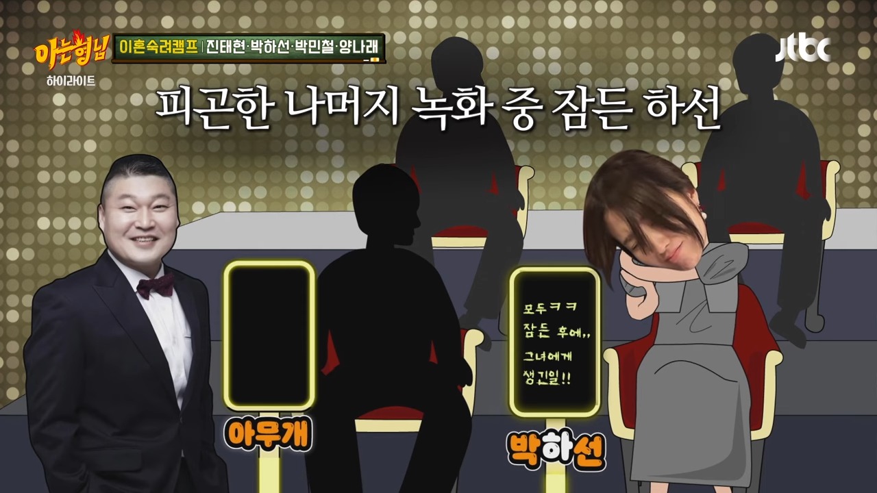 演員朴河宣近日和《離婚考慮營》的主持班底一起登上《認識的哥哥》,一開場就感謝姜鎬童:「其實我很感激,是姜鎬童讓我走到今天這個位置」,透露因《強心臟》錄影時「打瞌睡」,讓她重新獲得《High Kick》系列角色,成為她演藝生涯的重要轉折點。