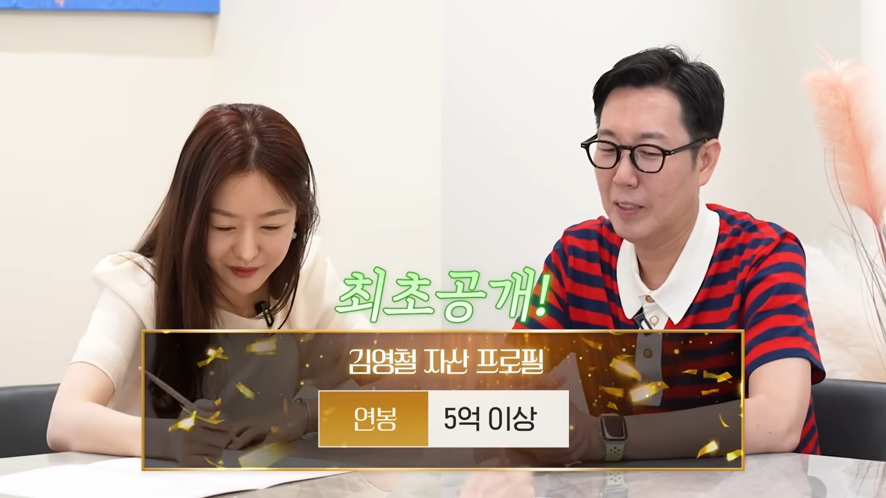 諮詢過程中,金榮澈透露自己年收入超過 5 億韓元,且在首爾高級地段清潭洞擁有自宅,經濟狀況相當穩定。不過他也補充:「我不會開車,所以沒有車」。被問到最近一次的戀愛經歷時,金永哲透露是去年冬天到今年初的「曖昧關係」,「錄影結束後打開手機,對方傳了上百條訊息,都是她自己一問一答,實在太有壓迫感,反而退縮了」。