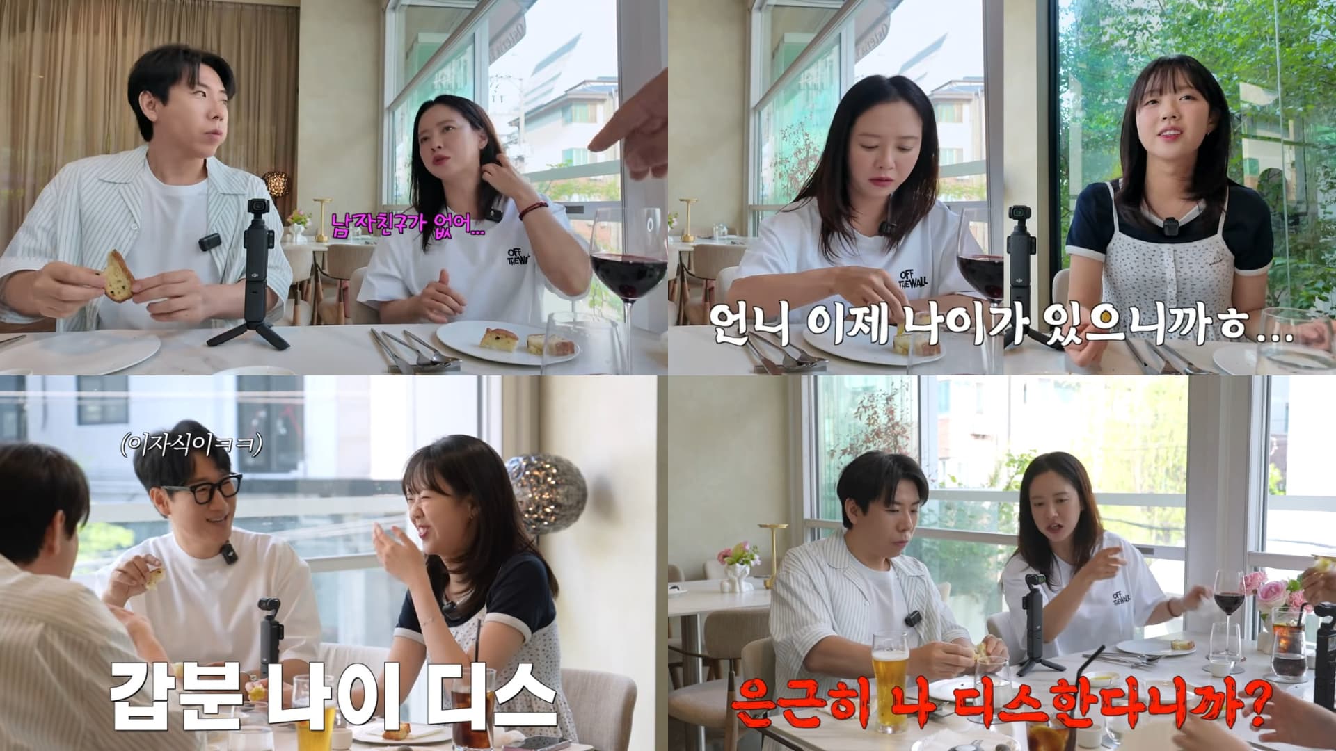 此時,池睿恩突然來一句:「歐妮,妳現在不用再偷偷交往了,年紀到了,觀眾們會理解的~!」。語帶笑意卻也帶點「年紀」的調侃,池錫辰聞言無語的看著她,宋智孝也笑說:「妳有點壞,這是在偷偷嗆我嗎?」,兩人一來一往展現「姊妹鬥嘴」的化學反應。