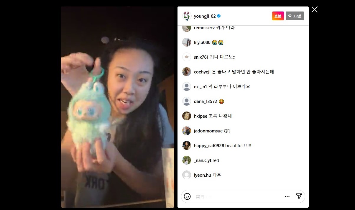此外,在今(10)日晚上 8 點左右,李泳知在 IG 進行再次直播開箱正版「拉布布」。