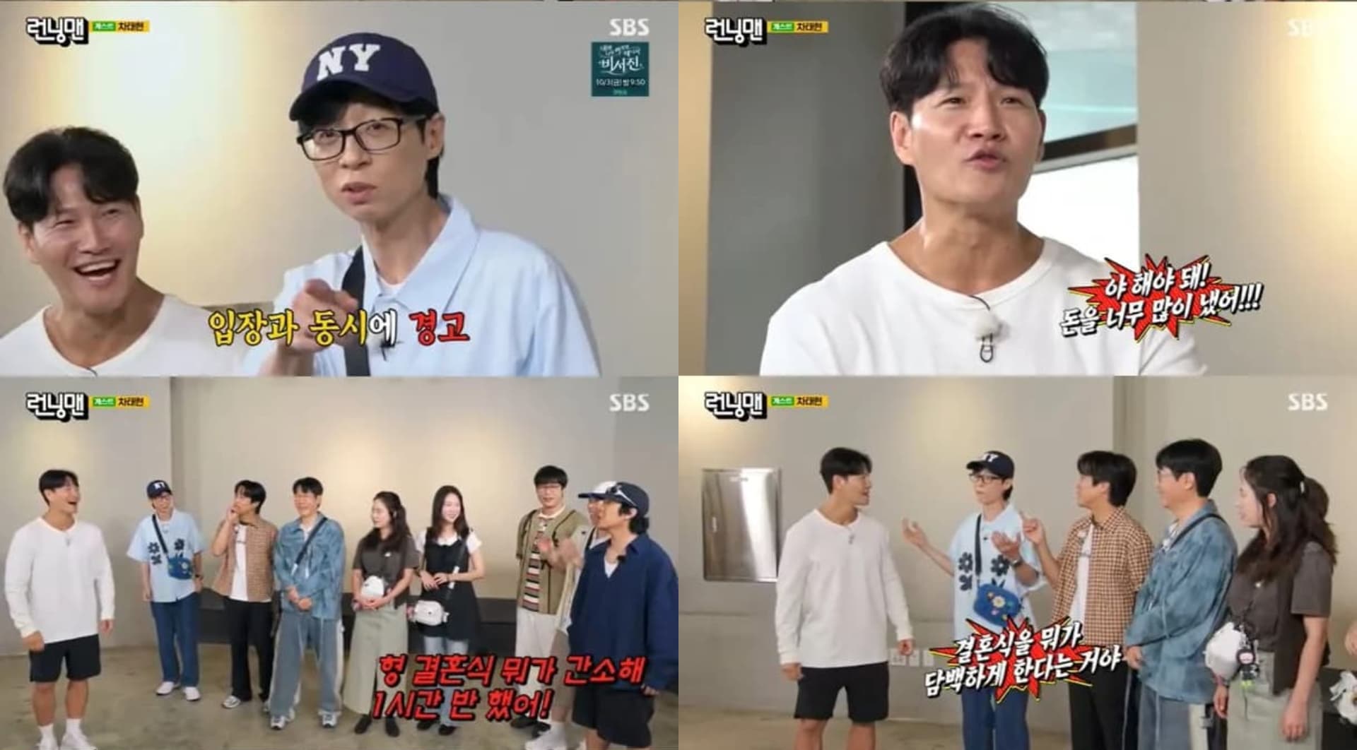 金鍾國婚禮全程低調嚴格保密,甚至前一天才通知賓客地點,被韓媒形容為「007作戰」。劉在錫也爆料,金鍾國入場時竟提醒賓客「噓,安靜點」,甚至叮嚀「別太誇張」。至於婚禮是否如先前所說「簡單舉辦」?成員們一致吐槽:「光是儀式就一個小時,整場長達一個半小時,是我們參加過最久的婚禮!」。面對質疑,金鍾國尷尬回應:「就該這樣,因為錢花太多了嘛!」