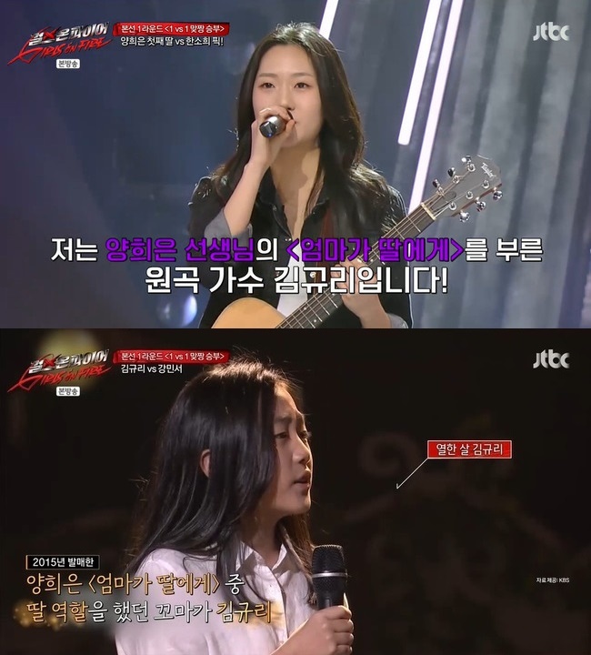 18 號選手的感人故事引發熱議,網友挖出她去年曾參加 JTBC 選秀節目《Girls on Fire》,以「楊姬銀大女兒」為名參賽的 18 號選手,其實就是金奎莉(김규리)。她曾於 2015 年與楊姬銀合唱歌曲〈媽媽給女兒的話〉。