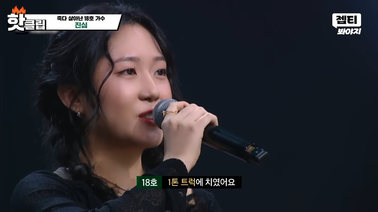 這位 18 號選手自曝在通過《Sing Again》預選後、準備正式比賽的過程中不幸遭遇車禍,「被 1 噸貨車撞上,清醒過來時發現自己被壓在車底下,司機甚至沒發現撞到人就又開了幾公尺,導致脊椎有六處骨折」。儘管受了重傷,一開始感到很絕望,她仍堅強表示:「幸好嗓子和彈吉他的手臂沒有受傷,我想這代表我還有很多歌要唱」,努力復健一週後,重返舞台挑戰。