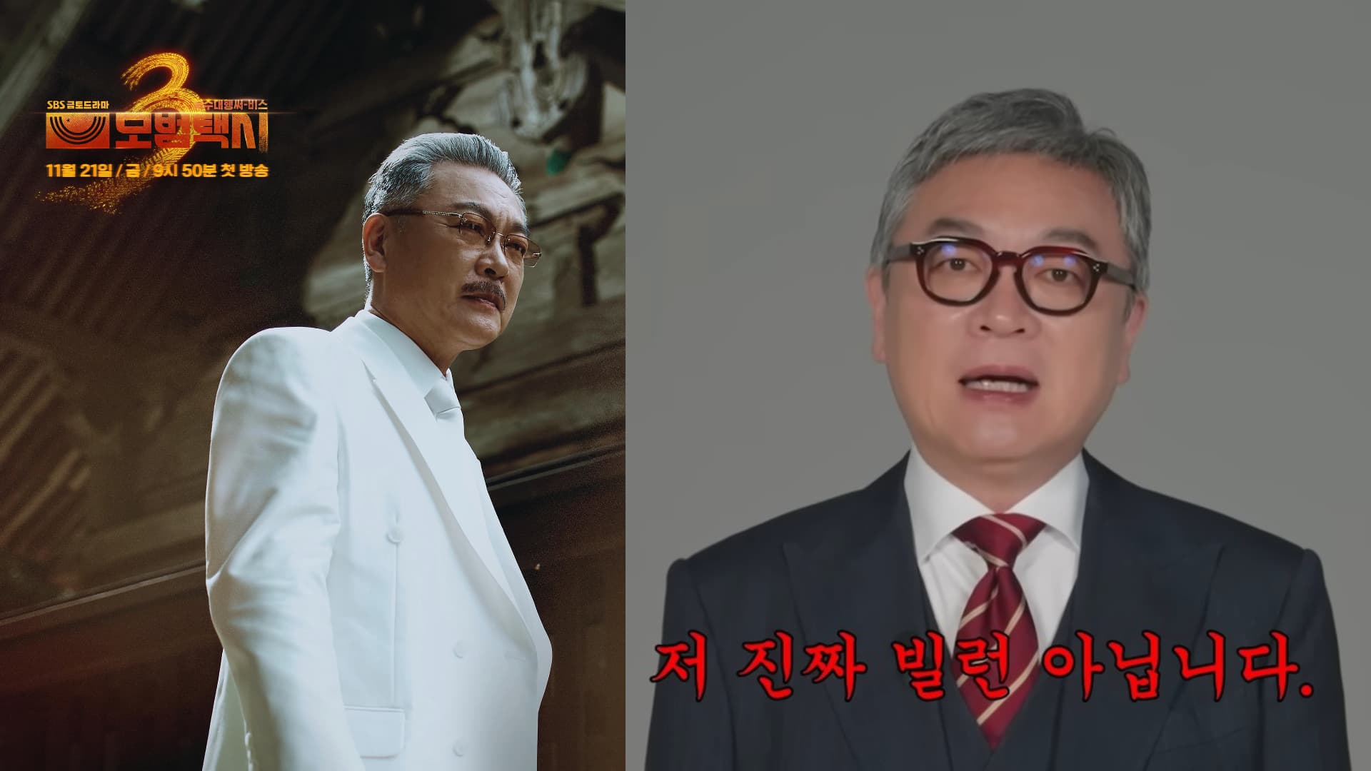 SBS 官方 YouTube 頻道 21 日上傳一支標題為〈我是金義聖。我有話一定要說〉的影片。金義聖在《模範計程車》系列中飾演「彩虹運輸」代表、同時也是「青鳥支援中心」會長張省哲一角。由於他過去在多部作品中以強烈的反派角色聞名,從第一季開始,就不斷有觀眾懷疑他是不是幕後黑手,傳言一路延燒到第三季。