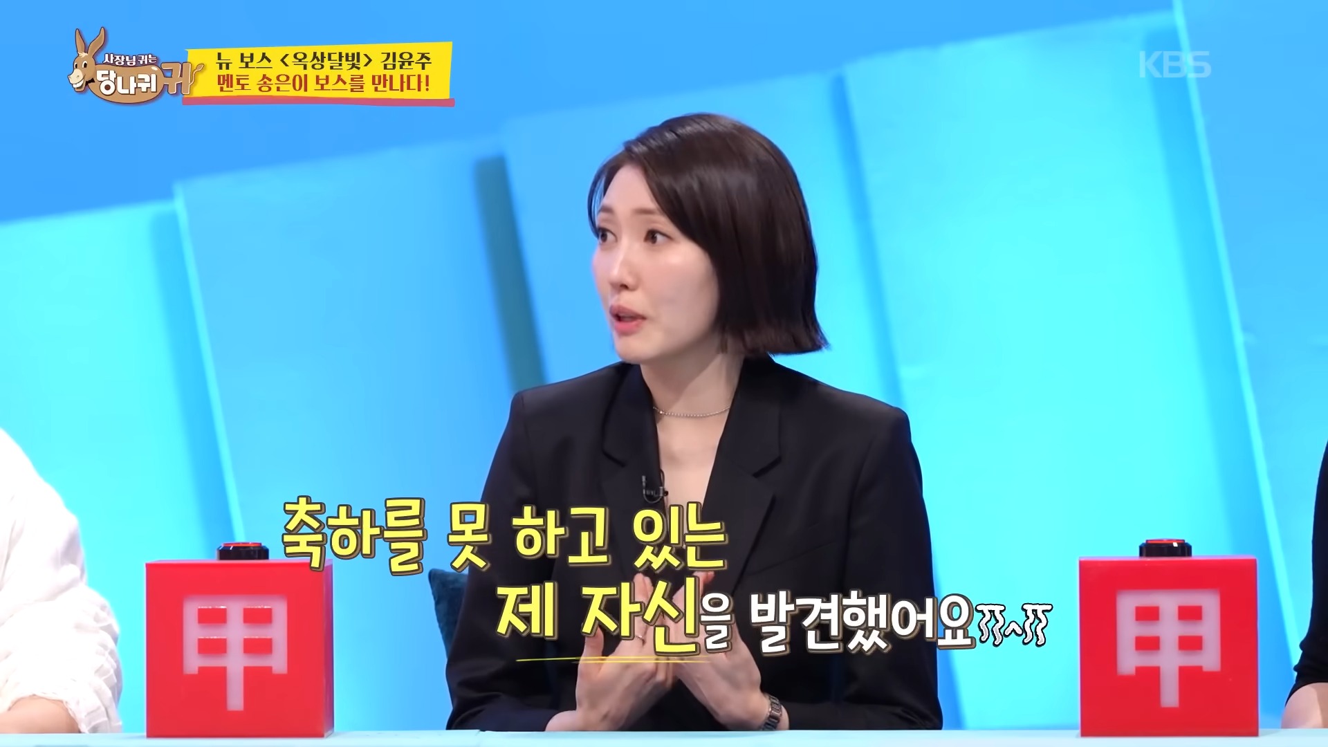 隨後,宋恩伊建議金允洙把握機會用「熟人卡」,說的正是丈夫權正烈主持的《10CM 的撫慰撫慰》,全炫茂也起鬨:「就上妳老公的節目啊!」