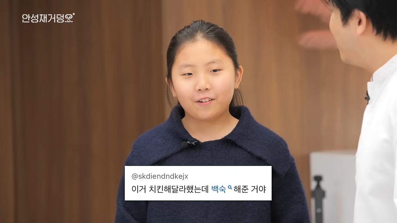 在之前的影片播出後,許多網友留言支持女兒並譴責安成宰,接著登場的女兒詩英說:「朋友們都問我好不好吃,我覺得味道是有啦。而且看到一萬三千條留言替我出氣,我其實覺得滿感謝的。其中有一條留言我印象很深,叫你做炸雞,結果你做成了清燉雞』,真的太貼切了」。