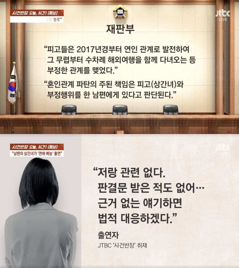 對於指控,該名被點名的女性透過節目反駁:「與我無關,也沒收到判決書。如果再散播謠言,將採取法律行動」。