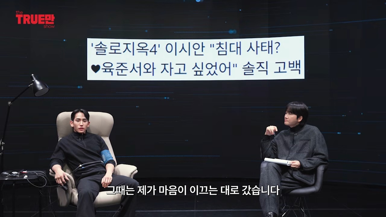 李龍真也不忘提到節目史上最大尺度的互動「曖昧同床」,直問:「李時安曾說『我想和陸俊諝一起睡』,你當時是不是也有同樣的想法?」。沒想到陸俊諝毫不避諱地回答:「沒錯。」,現場瞬間驚呼連連,他笑說:「那時候我只是順著自己的心走」,測謊儀結果更顯示為「真實」。