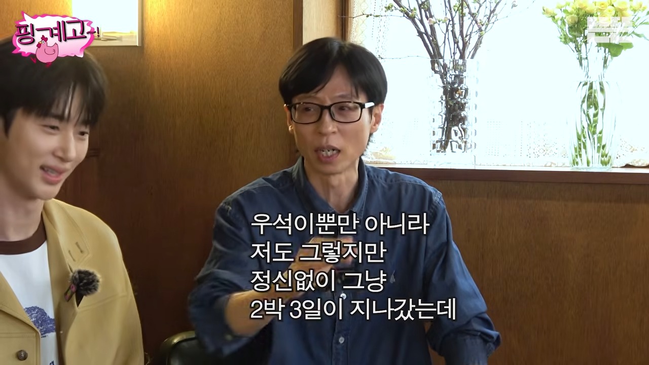 劉在錫影片中提到兩人的緣分:「佑錫曾和我一起在《民宿法則》度過 2 天 3 夜」。邊佑錫幽默回應:「我完全不記得那 2 天 3 夜做了什麼,只記得自己好像有在呼吸」。劉在錫也坦言相當忙碌:「不只佑錫,我也是精神恍惚中度過那三天兩夜」。IU 則爆料,當時兩人正忙於《大君夫人》拍攝,邊佑錫參加節目回來後「瘦到皮包骨」。