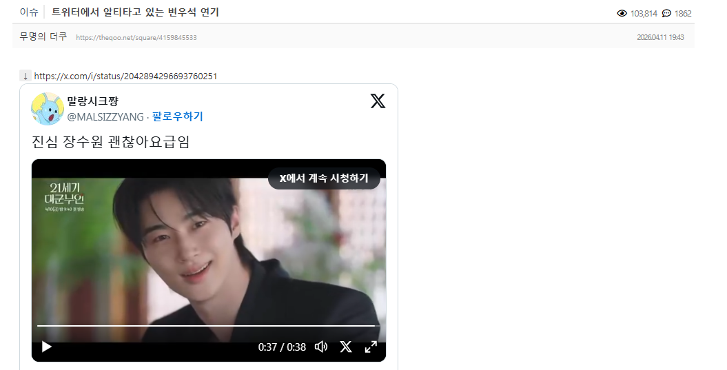 關於《21世紀大君夫人》的討論這幾天幾乎洗版,特別是針對邊佑錫的演技,其中一則更超過 1,800 則留言:「跟孔升妍對戲的時候,怎麼回事啊…還以為在唸課本…」、「邊佑錫的演技太不自然,IU 也跟角色不太搭,實在看不下去所以轉台了…」、「欸不是…真的看不下去了,邊佑錫就算了,IU 有爛到這種程度嗎?我記得以前不是這樣啊」、「IU 是導演指導太過頭嗎,整個像在說『我在演戲喔』的感覺;邊佑錫則是直接變成『我不會演戲』的狀態…所以看起來更嚴重,兩個人有種勢均力敵的感覺」、「但也不只是邊佑錫一個人演不好,IU 的演技也完全很油膩、很做作,兩個人本來就這麼不會演嗎?」、「只有孔升妍在演戲」、「邊佑錫跟 IU 兩個人,都要靠對戲的演員夠強才會看起來還行,但他們本來就不是演技派啊。像《苦盡柑》也是對手演員撐起來的」、「演技先不說,但發聲真的不太行……咬字超不清楚」、「善宰真的演得很好啊..ㅠㅠ 是不是角色不太適合…」、「語氣先不說,但驚訝的表情完全沒有出來啊,從頭到尾表情都一樣」、「兩個人演技都不怎麼樣,IU 那個…叫什麼來著?那部有飯店的電視劇,看起來演技都一樣」、「演技確實不太行ㅋㅋ試著靜音看一次吧,孔升妍就算沒聲音也大概能看出情緒,但邊佑錫就沒有那種感覺,IU 跟他對戲放在一起也變得很尷尬」、「IU 跟邊佑錫本來就不是演技派,孔升妍的聲音跟語調真的很強,她原本有這麼會演嗎?」。