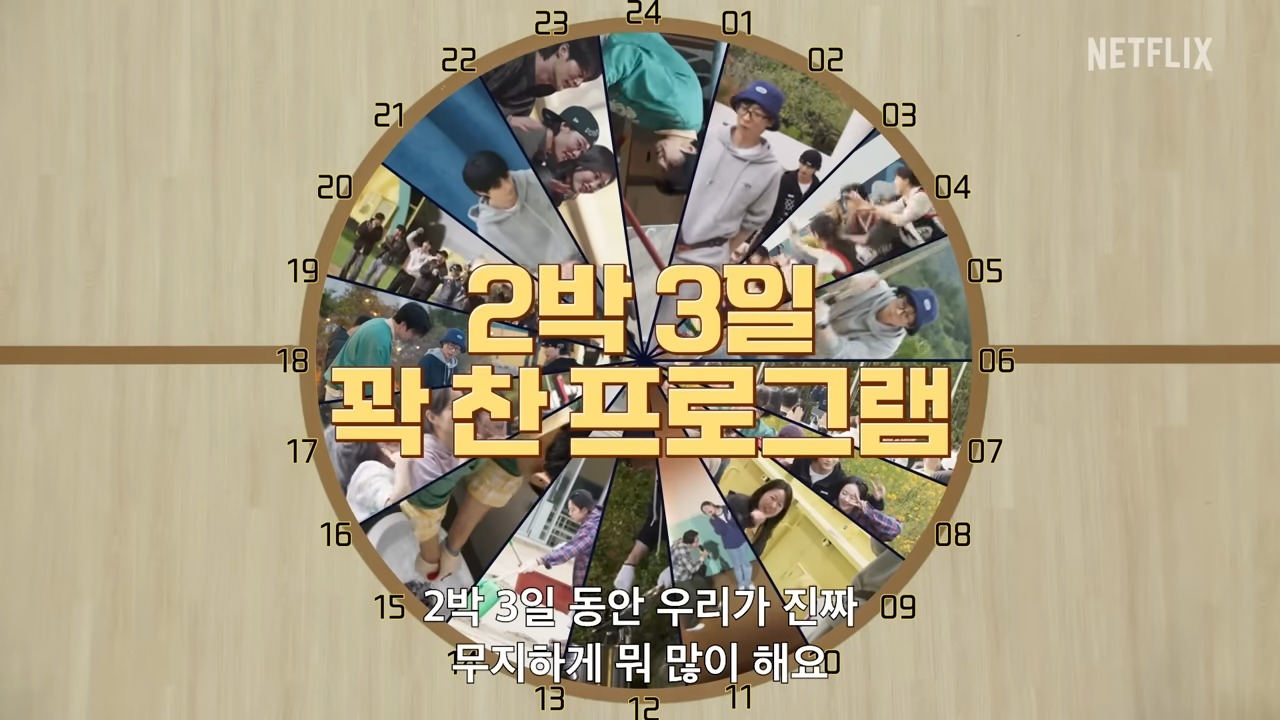 從官方釋出的預告可見,劉在錫以營地主身分熱情迎接客人,還搭配煙火秀氣勢開場。員工們更豪語要讓大家體驗「天堂級待遇」,氣氛一開場就嗨翻。不過仔細一看行程表,根本是體力大考驗。清晨起床任務、三餐準備、午後團康遊戲、晚間才藝表演,甚至還安排「深夜感性時間」,24 小時幾乎沒有喘息空間。